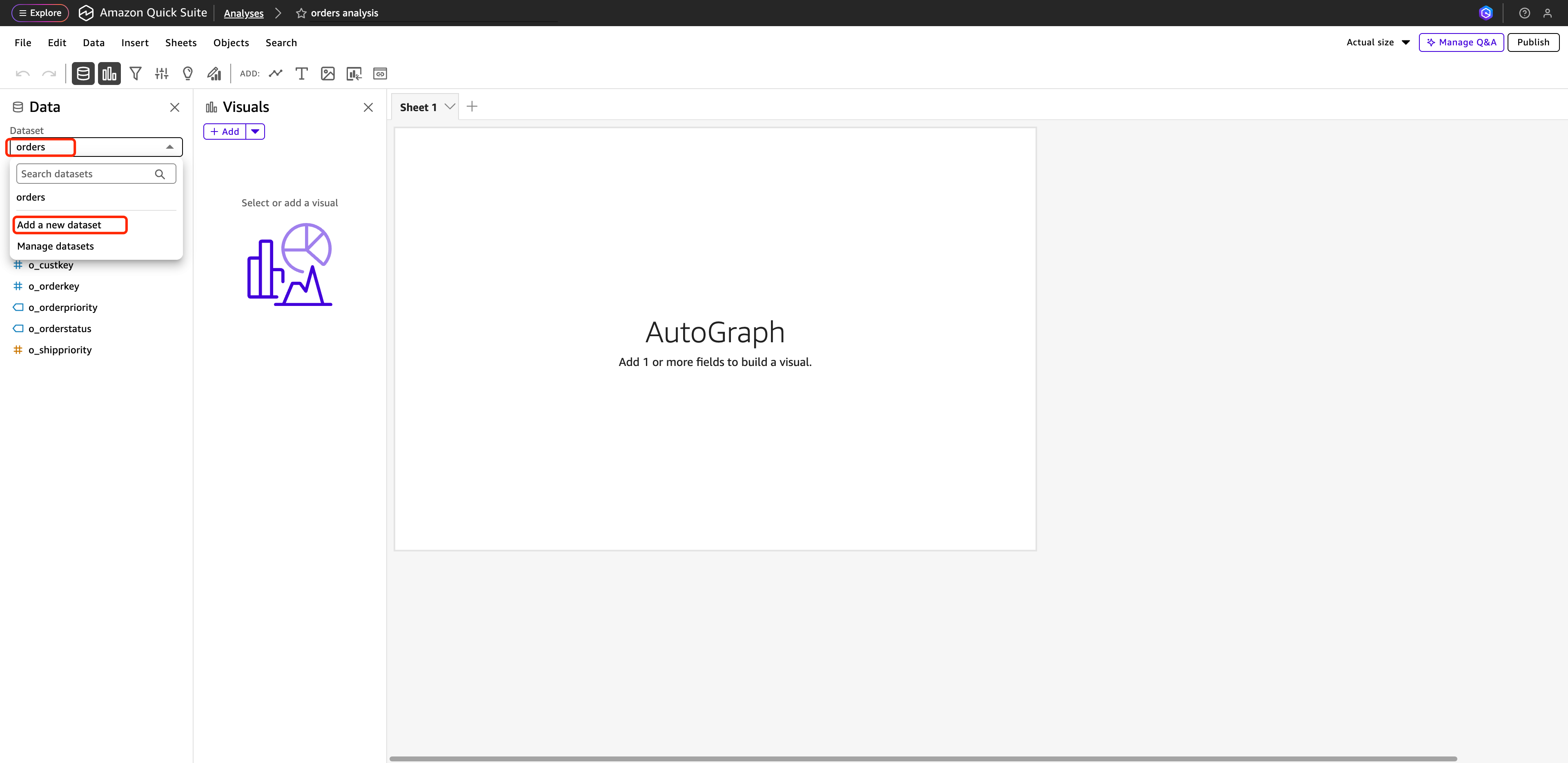首先,访问 https://quicksight.aws.amazon.com,导航到数据集并点击“新建数据集”:
