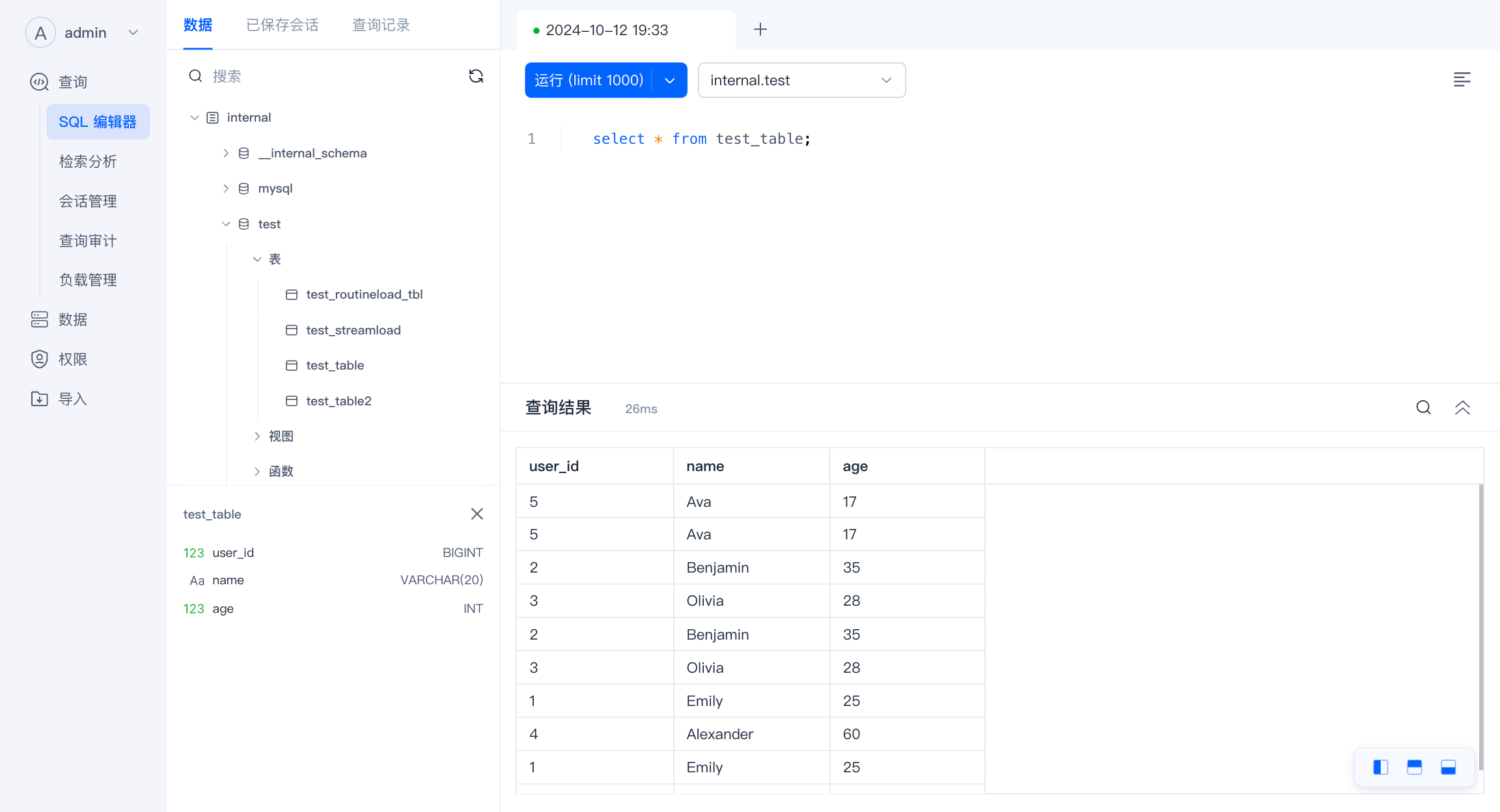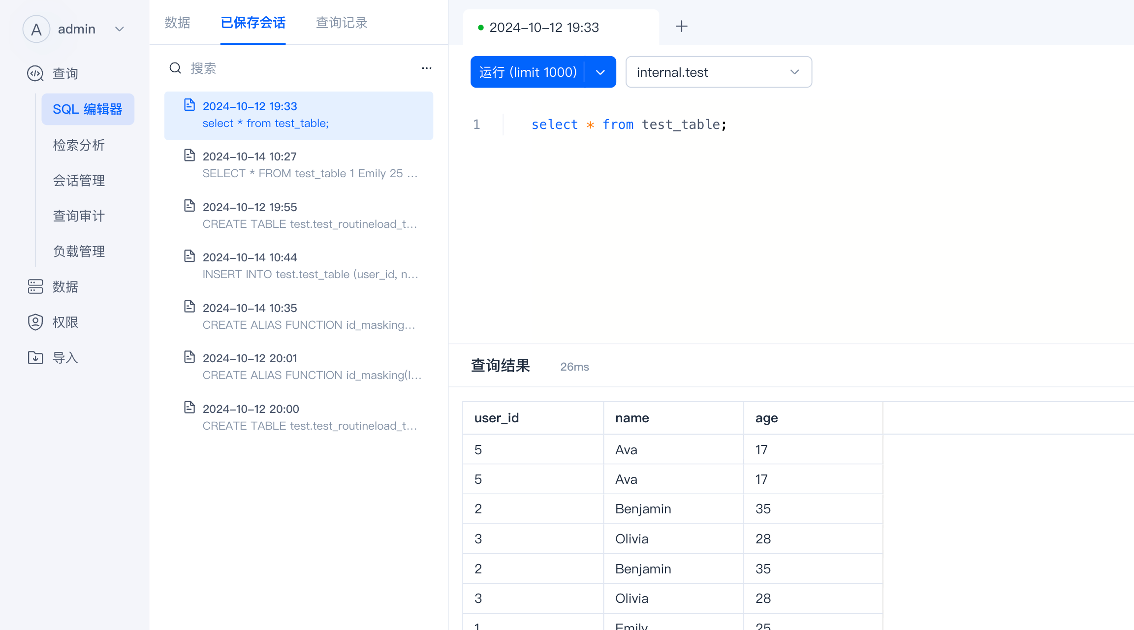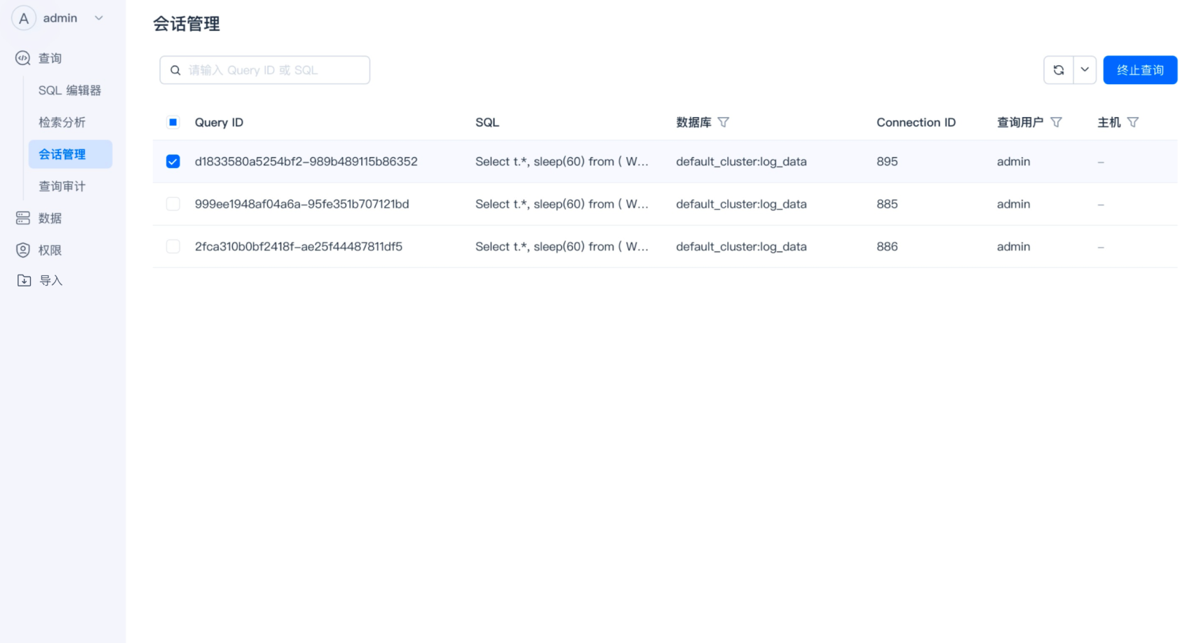 - 会话管理 :管理正在运行的 SQL 查询,允许查看和终止 SQL 查询。