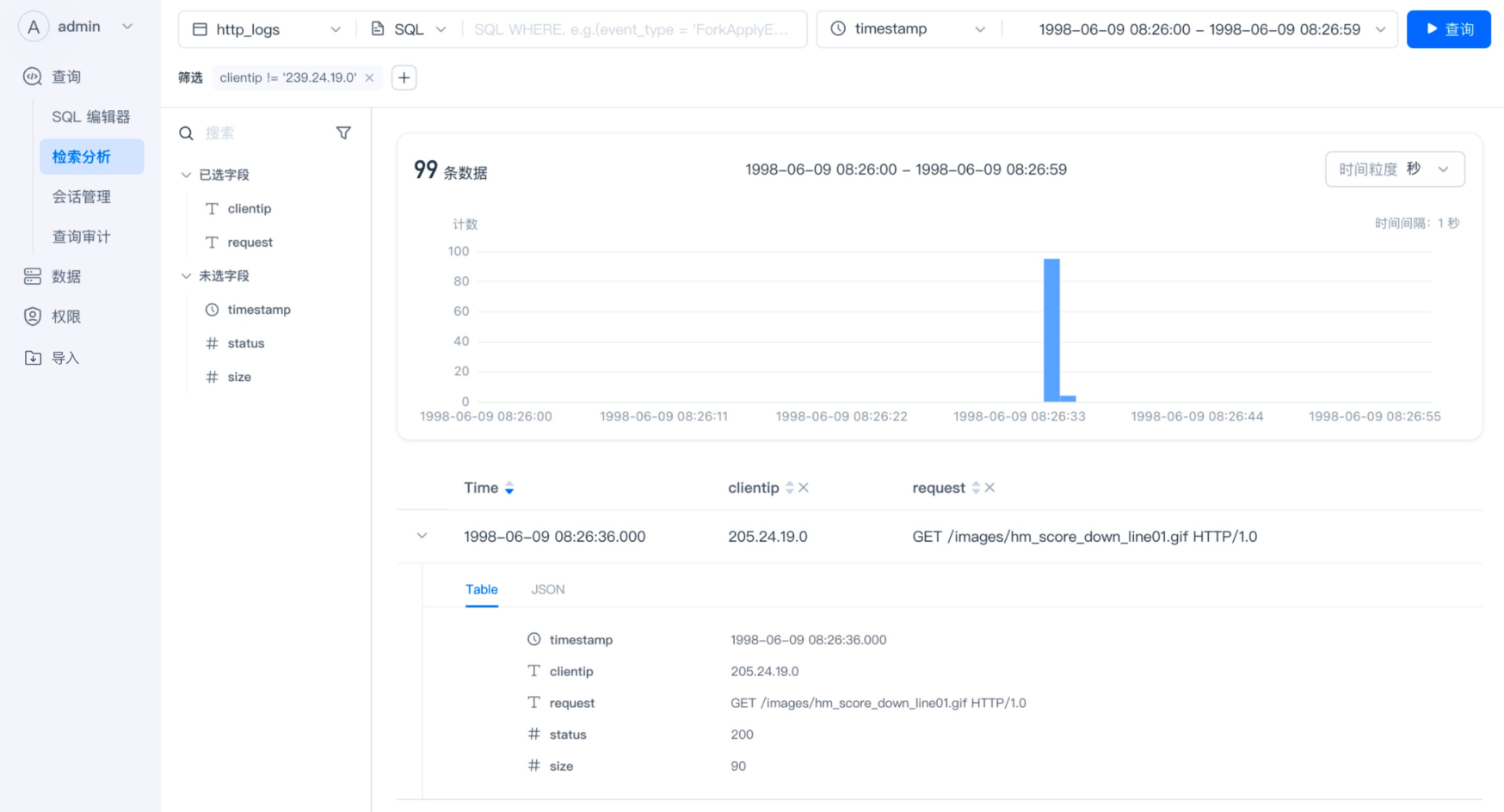 检索分析是 WebUI 推出的,针对于日志分析场景的查询工具,可以方便的对日志进行检索、查询、统计。