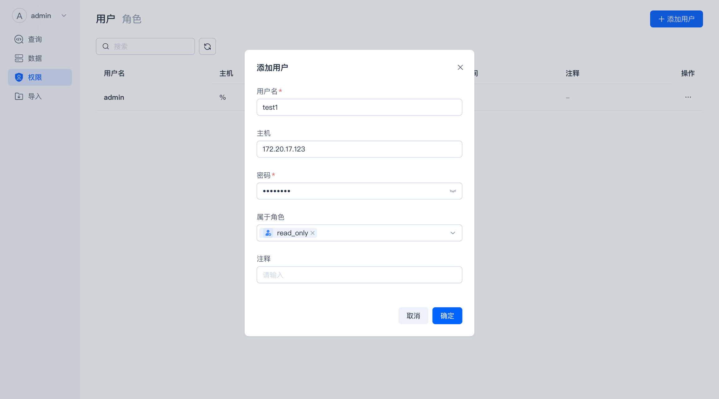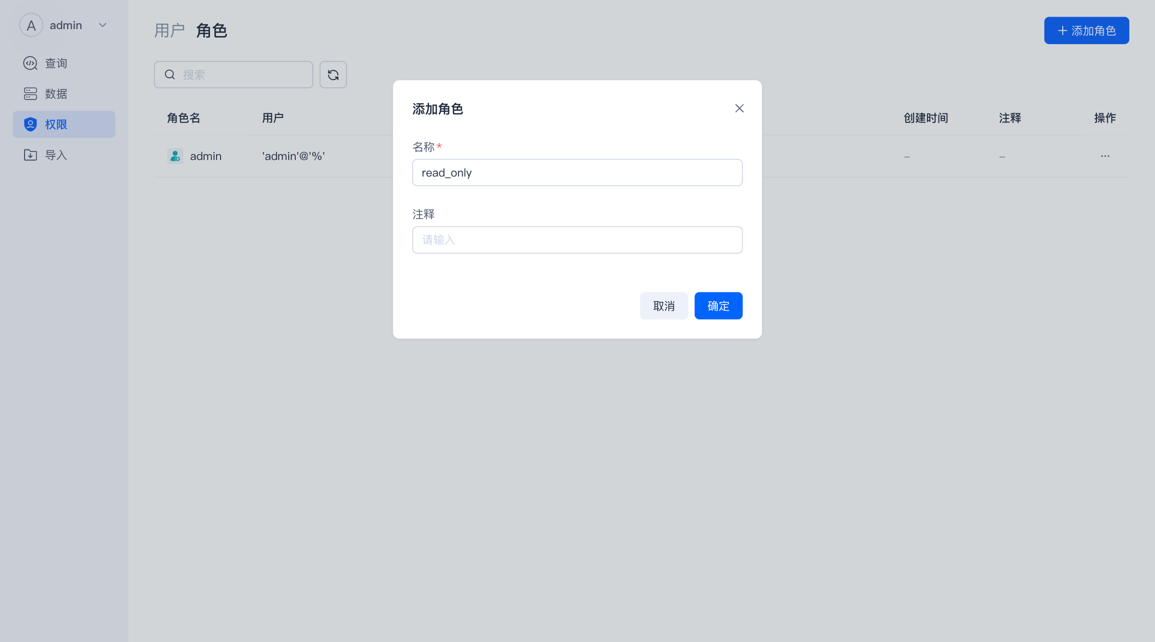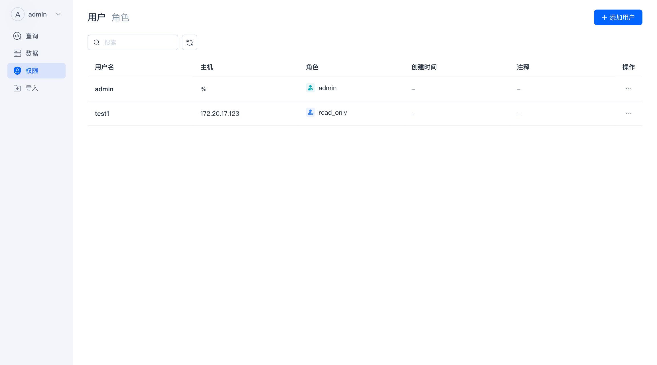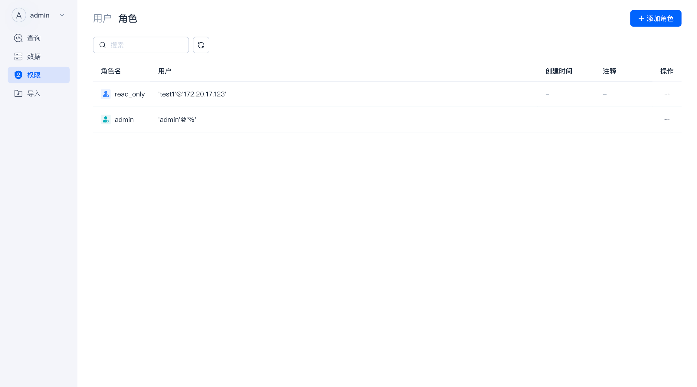 只有拥有 Admin 权限的用户能新增、修改其他角色。